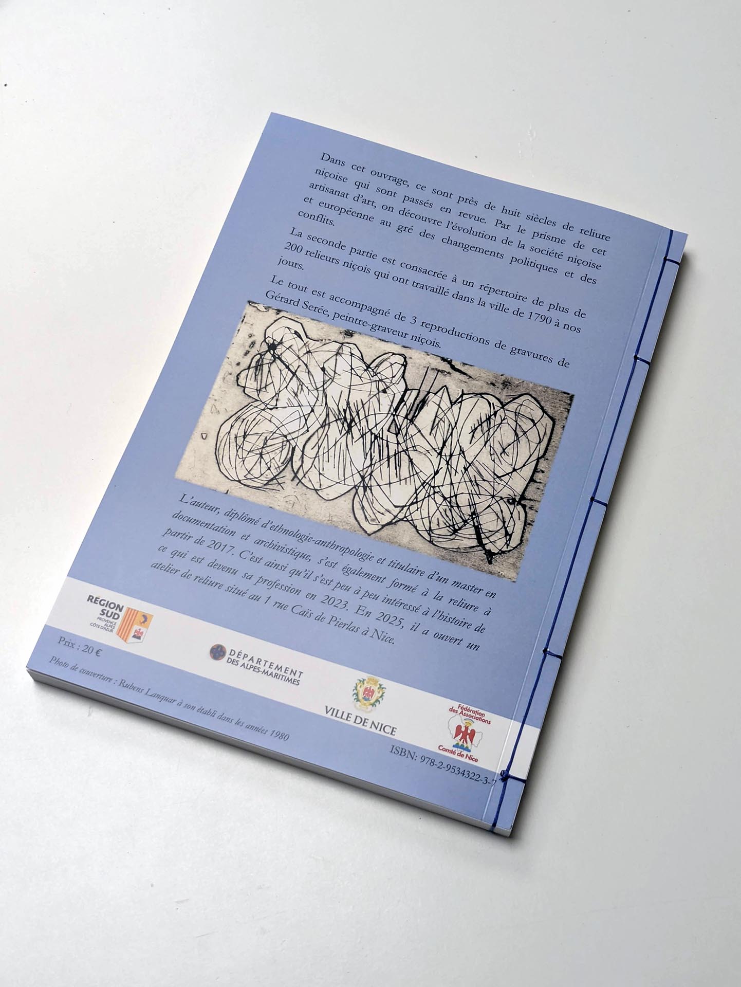 Dans cet ouvrage, ce sont près de huit siècles de reliure niçoise qui sont passés en revue. Par le prisme de cet artisan d’art on découvre l’évolution de la société niçoise et européenne au gré des changements politiques et des conflits. La seconde partie est consacrée à un répertoire de plus de 200 relieurs niçois qui ont travaillé dans la ville de 1790 à nos jours. Le tout est accompagné de 3 reproductions de gravures de Gérard Serée, peintre-graveur niçois. Notice sur l’auteur : Vincent Bottasso-Daideri est diplômé d’ethnologie-anthropologie et titulaire d’un master en documentation et archivistique, s’est également formé…